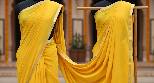 Agricultural communities particularly value yellow’s connection to successful harvests and fertile land. When brides wear their haldi saree for bride, they symbolically invite the same abundance that blessed fields bring to their new households. This connection explains why many yellow saree designs feature motifs of wheat, flowers, and other agricultural symbols.